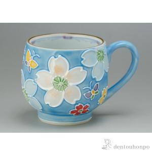 交趾花絵 マグカップ 青 ( 名入れ有料 プレゼント デザイン マグ オリジナル タンブラー 清水焼 京焼 結婚 出産 内祝い 引き出物 金婚式 誕生日プレゼント )
