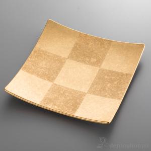 市松 スクエアプレート (L) (金) ( 箔一 退職祝い 定年 おしゃれ ブランド せんす 和柄 うちわ 金沢金箔 結婚 出産 内祝い 引き出物 )