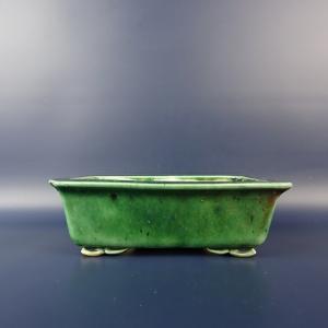 【中古】盆栽鉢 越前 芳水 小型 長辺 約 16.3cm 長方鉢 外縁 釉薬 現品 中古鉢
