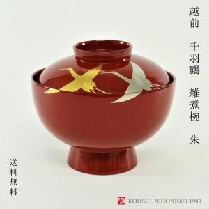 越前 千羽鶴雑煮椀 朱 新入荷 迎春 お正月 慶事 越前塗 汁椀 蓋付椀 雑煮椀 日本製 蒔絵 モダン 送料無料