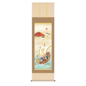 掛け軸 赤富士開運宝船 北山歩生 44.5x164cm 三幸