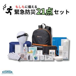 【即納】【在庫限り】防災グッズ 防災セット 防災リュック 非常用持ち出し袋 岸田産業 緊急防災21点セット(800E) 8-800E 地震対策 災害対策 緊急用 2025
