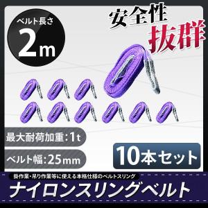 スリングベルト 2m 10本セット 耐荷1000kg ナイロンスリング 吊具 業務用 1T