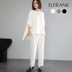 セットアップ レディース カジュアル きれいめ 大きいサイズ 秋冬 トップス パンツ カットソー ブラウス ロング ボトムス シンプル クルーネック 大人