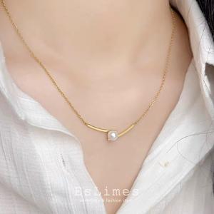 ネックレス レディース カーブ パール バー ステンレス製 韓国 シンプル ゴールド カジュアル オシャレ 誕生日お祝い プレゼント