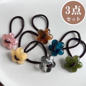 ヘアゴム 大人っぽい 3点セット お花 ヘアアクセサリー おしゃれ ストーン 華やか 上品 エレガント ガーリー かわいい 韓国 韓国っぽ