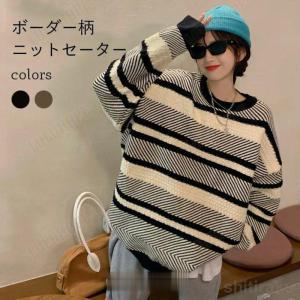 レディース 韓国ファッション ニット セーター クルーネック ざっくり ゆるシルエット 長袖 トップス カジュアル 大人女子 シンプル スタイリッシュ デイリー