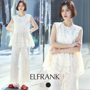 セットアップ レディース カジュアル きれいめ 大きいサイズ レース トップス パンツ カットソー ブラウス ノースリーブ ロング ボトムス シンプル クルーネック