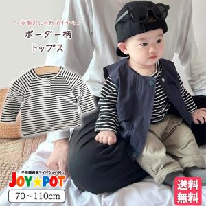 ベビー服 長袖 ロンT ボーダー 2ボタン 韓国風 トップス 男の子 70 80 90 100 子供服