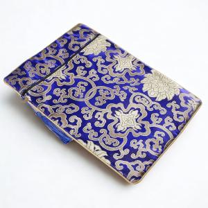 御朱印帳 ケース カバー 袋 ポーチ 大判 御朱印帳入れ 収納 小物入れ ファスナー 風水 和風 (ブルー)