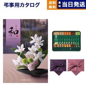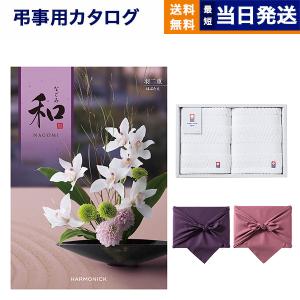 和(なごみ) カタログギフト 羽二重(はぶたえ) +今治 綾 フェイスタオル2枚セット 風呂敷包み 香典返し 仏事 葬儀 家族葬 御挨拶状 ギフトカタログ 今治タオル
