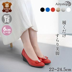 Airystep エアリーステップ レディース バレエシューズ 幅広 歩きやすい ミドルヒール 柔らかい 本革 059-6050