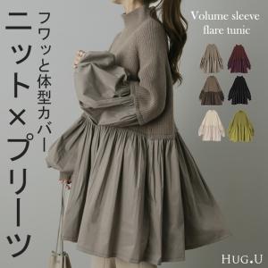 ニット レディース トップス プルオーバー ハイネック タートル チュニック 長袖 ブラウス ドッキング バルーン袖 お尻が隠れる2