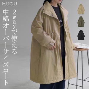 コート 2way ミリタリーコート ロング アウター モッズコート Vネック スタンドカラー 長袖 無地 オーバーサイズ
