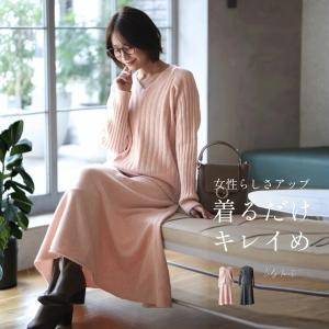 セット 上下セット 2点セット トップス スカート ニット リブ 長袖 セーター ロングスカート オフィス カジュアル