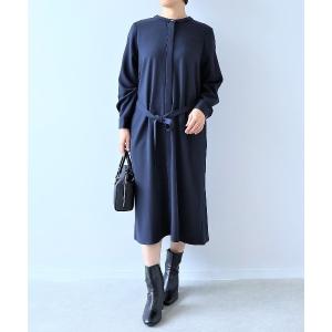 ワンピース 「L〜5L 大きいサイズ」バンドカラーパイピングワンピース