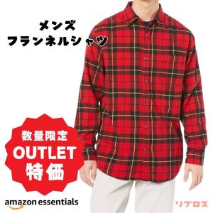 Amazon Essentials フランネルシャツ メンズ Mサイズ スリムフィット 長袖 ブラック レッド イエロー ラージチャック柄 コットン100%
