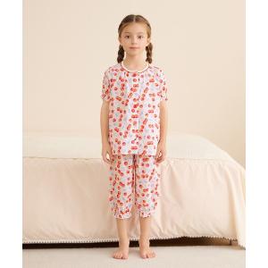 パジャマ おなか安心ボタン付き半袖前開きガーリーガーゼパジャマ(さくらんぼ・小花) キッズ 子供 女の子