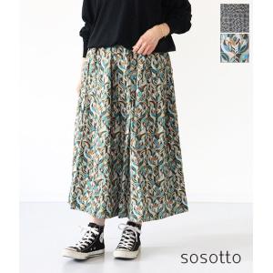 【送料無料】【ネコポス発送】【2025AW】sosotto [ソソット] LIBERTYタナローン ミモレ丈タックギャザースカート 42552957