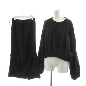 未使用品 エミ emmi イージードロストタフタセットアップ シャツ ブラウス プルオーバー フレアスカート ミモレ ロング 0 紺 ネイビー