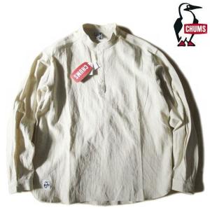 チャムス/CHUMS【ハリケーンシャツ】オーバーサイズ ノーカラー バンドカラーシャツ 綿麻プルオーバーシャツ CH02-1231 グレージュ