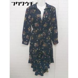 ◇ fifth フィフス 花柄 長袖 膝丈 シャツ ワンピース サイズM ネイビー レディース