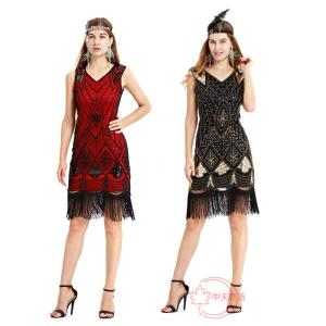 ハロウィン復古風 レディース セクシーフリンジ付き スパンコール付きワンピース コスプレ衣装 パーテイー衣装 イベント衣装 演劇ステージ服