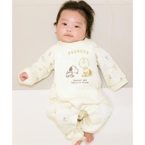 ベビー服 ロンパース 「スヌーピー」格子ニットキルト 長袖カバーオール