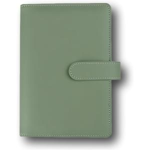 バインダー A6 6穴 PUレザー ポケット12個 ラベル付き(ティーグリーン)