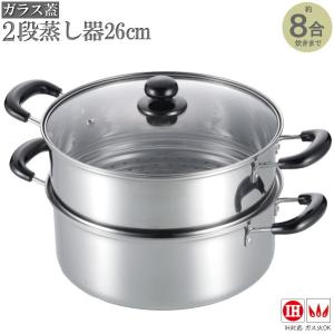 蒸し器 2段 26cm ガラス蓋付き ステンレス製 2段蒸し器 26cm 約8合炊きまで対応 蒸し上手 家庭用 IH対応 ガス火OK 茶碗蒸し おこわ 蒸す 蒸し鍋