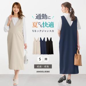マタニティ ワンピース 夏 ジャンスカ Vネック ロング 授乳服 妊婦服 通勤 仕事服 オフィス 無地 エンジェリーベ
