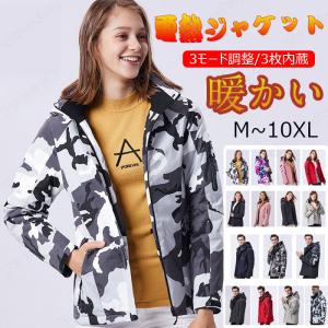 電熱ジャケット ヒーター付き登山服 電熱服 バッテリー USB極暖 マウンテンパーカー フード付き 中綿コート 発熱服 ヒートジャケット 秋冬防寒作業服 アウトドア