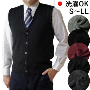 日本製 ニット ベスト S~3L 洗濯OK 毛玉抑制 無地 前開き ビジネス Vネック ベスト ニット メンズ チョッキ 洗える 通勤 通学 プレゼント