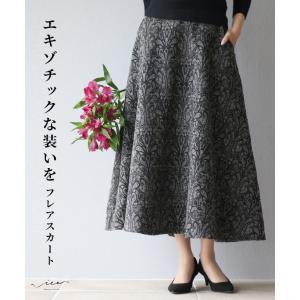 スカート ボトムス ロングスカート フレアスカート 柄 総柄 レディース ミセス 婦人服 Vieo ヴィオ 40代 50代 60代 フリーサイズ