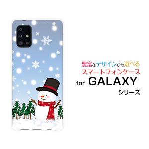 GALAXY A51 5G ギャラクシー TPU ソフトケース/ソフトカバー ガラスフィルム付 雪原の雪だるま スノーマン 雪の結晶 可愛い かわいい