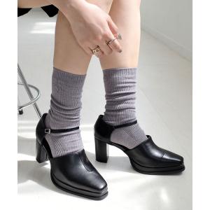 パンプス 厚底スクエアトゥセパレートパンプス