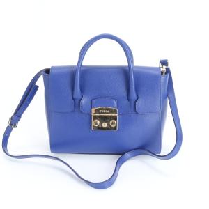 美品 フルラ メトロポリス ブルー レザー 2WAY ショルダーバッグ 斜め掛け ハンド 本革 レディース RUM DO22-10