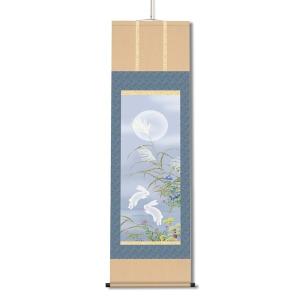 〔 ウサギと月の掛け軸 〕 縁起の良いお月様掛軸 田村竹世 掛軸「月見兎」 尺三