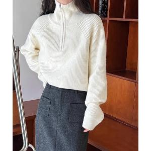 ニット セーター ショート丈ハーフジッププルオーバー レディース
