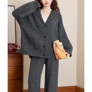 セットアップ ケーブルニットパーカーセットアップ(ベスト付き)3点セット レディース