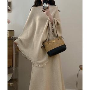 セットアップ フリンジニットポンチョプルオーバーセットアップ レディース