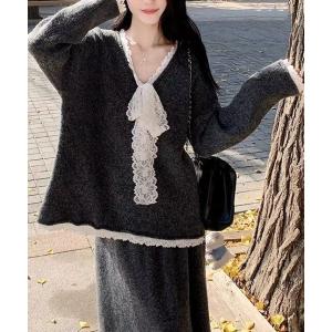セットアップ レースドッキングニットプルオーバーセットアップ レディース