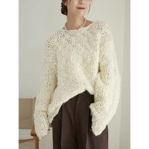 ニット セーター ウール混ハンドニットプルオーバー レディース