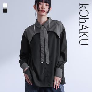 シャツ 長袖 レディース トップス ブラウス ボウタイ 取り外しできる 配色 ヨーク コットン混 オケージョン 秋 冬 春 夏 オールシーズン「メール便可」「10」