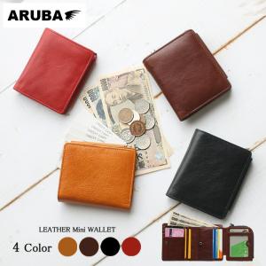 本革 ミニ財布 三つ折り 小さい スリム コンパクト 薄い カード 小銭 コイン 紙幣 お札 キャッシュレス レザー 革 赤 茶色 レッド アルバ mw264r11