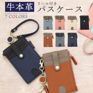 フラグメントケース パスケース リール付き レディース 小銭入れ コインケース カード 本革 バイカラー ストラップ 定期入れ 通勤 通学 薄型 財布 コンパクト