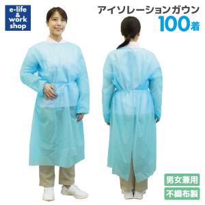 アイソレーションガウン 不織布ガウン 100枚 ブルー 紐 マジックテープ フリーサイズ 長袖 袖付き 男女兼用 医療 介護用 感染症対策