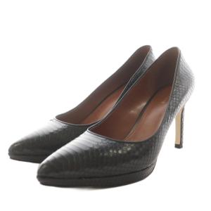 コールハーン COLE HAAN パンプス ポインテッドトゥ ヒール レザー 型押し 7.5B 黒 ブラック /AN13 ■MU レディース