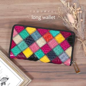 クロコダイル 長財布 サイフ クロコ 財布 ワニ革 本革 パッチワーク マルチカラー カラフル ギフト レディース さいふ lw011