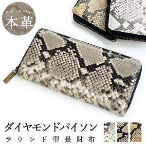 長財布 財布 本革 ダイヤモンド パイソン ラウンドファスナー サイフ 札入れ 小銭 コイン カード ケース ウォレット おしゃれ レザー ラウンド